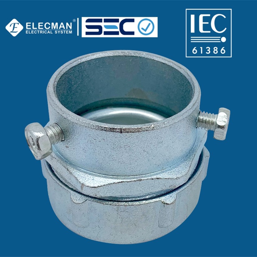 ELECMAN, 20 mm-50 mm arasında vidalı tipte sıvı geçirmez boru konektörlerine tam boyutlu IEC 61386 çinko EMT boru sağlar.
